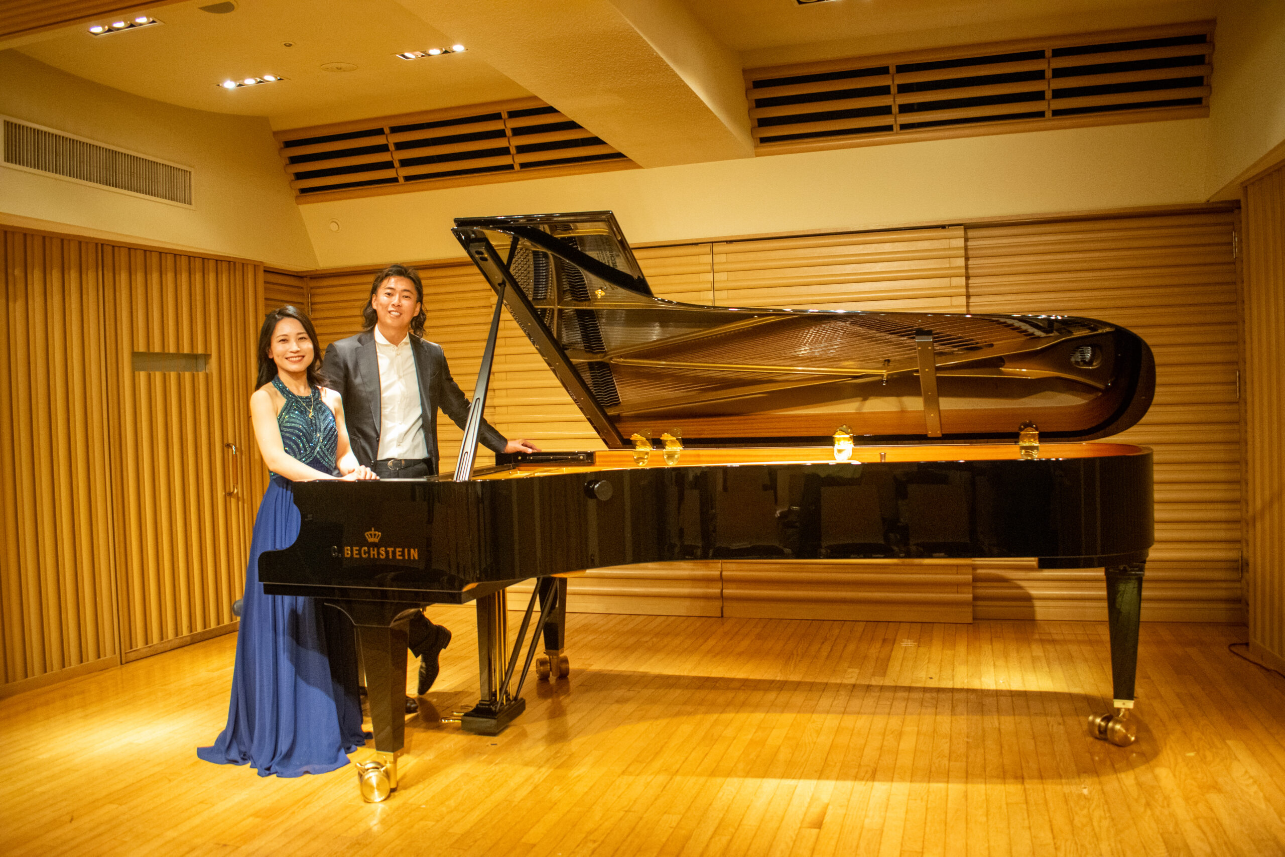 ベヒシュタイン・セントラム 東京のスタッフの皆様。とても素敵なホールで取材をさせていただき本当にありがとうございました。ベヒシュタインに初めて触れましたが、すばらしい音色で感動しました。福原さんと初心者曲を連弾できたのは良い思い出になりました。今後ますますのご発展を祈念しています。